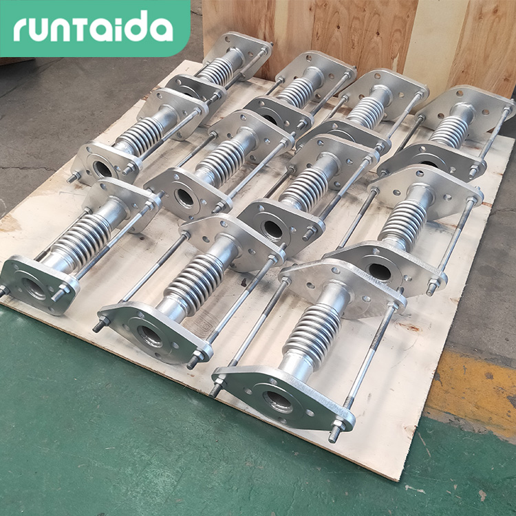 5.波紋補償器承壓焊縫焊接之后,應(yīng)對承壓焊縫進行壓力試驗,試驗壓力為設(shè)計壓力的1.5倍。根據(jù)補償器的容積大小,保壓10~30min,檢查補償器各部位有無滲漏,受壓時*波距與受壓前波距之比不超過1.15。7.補償器組焊后應(yīng)進行外觀和幾何尺寸的檢驗。補償器兩端面同軸度公差:當公稱通徑小于等于500mm時,為5mm;當公稱通徑大于500mm時,為公稱通徑的1%,且小于等于10mm 。補償器兩端面與主軸線垂直度公差為公稱通徑的1%,且小于等于3mm。補償器在出廠前進行預(yù)拉伸的,預(yù)拉伸后的出廠長度公差也應(yīng)符合規(guī)定,對補償器自由狀態(tài)長度和預(yù)拉伸后的出廠長度分別進行檢。